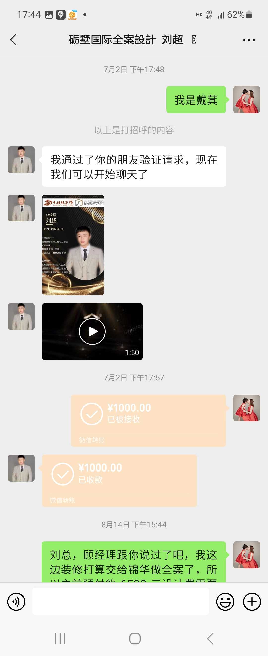| 投诉类型 | 不讲诚信 | 投诉人 | 戴** | 被投诉单位 | 南京砺墅空间装饰设计有限公司 |