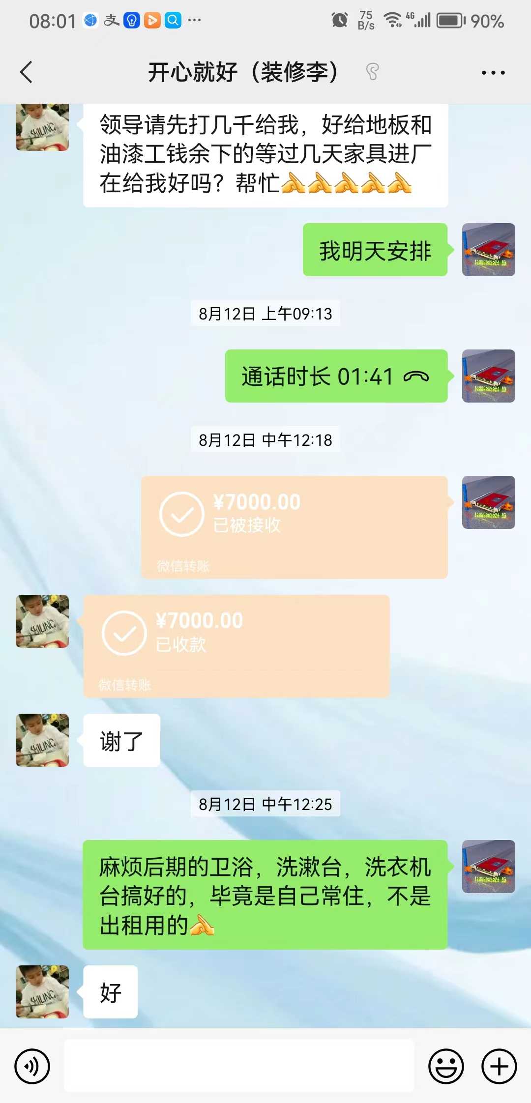 装修合同签订后,前期进场大概比合同规定时间晚一个月左右,因为是付一项装一项的模式,到木工环节,按合同支付了24000元货款,因木工为全屋定制的衣柜,橱柜需要大概一个月的时间,所以后续油漆地板在木工定制的这段时间正常做,又付了7000元费用,衣橱柜定制时间到期后一直以各种理由推脱未发,期间要装的吊顶,灯具,开关,洗漱台等都未安装。到我发现该公司并未给我定制衣橱柜并质疑后,该公司项目人员全部不接电话、微信等,后续一直失联,公司原办公地点也偷偷搬离(后被我找到:绿地城际空间站 H1栋407室)。