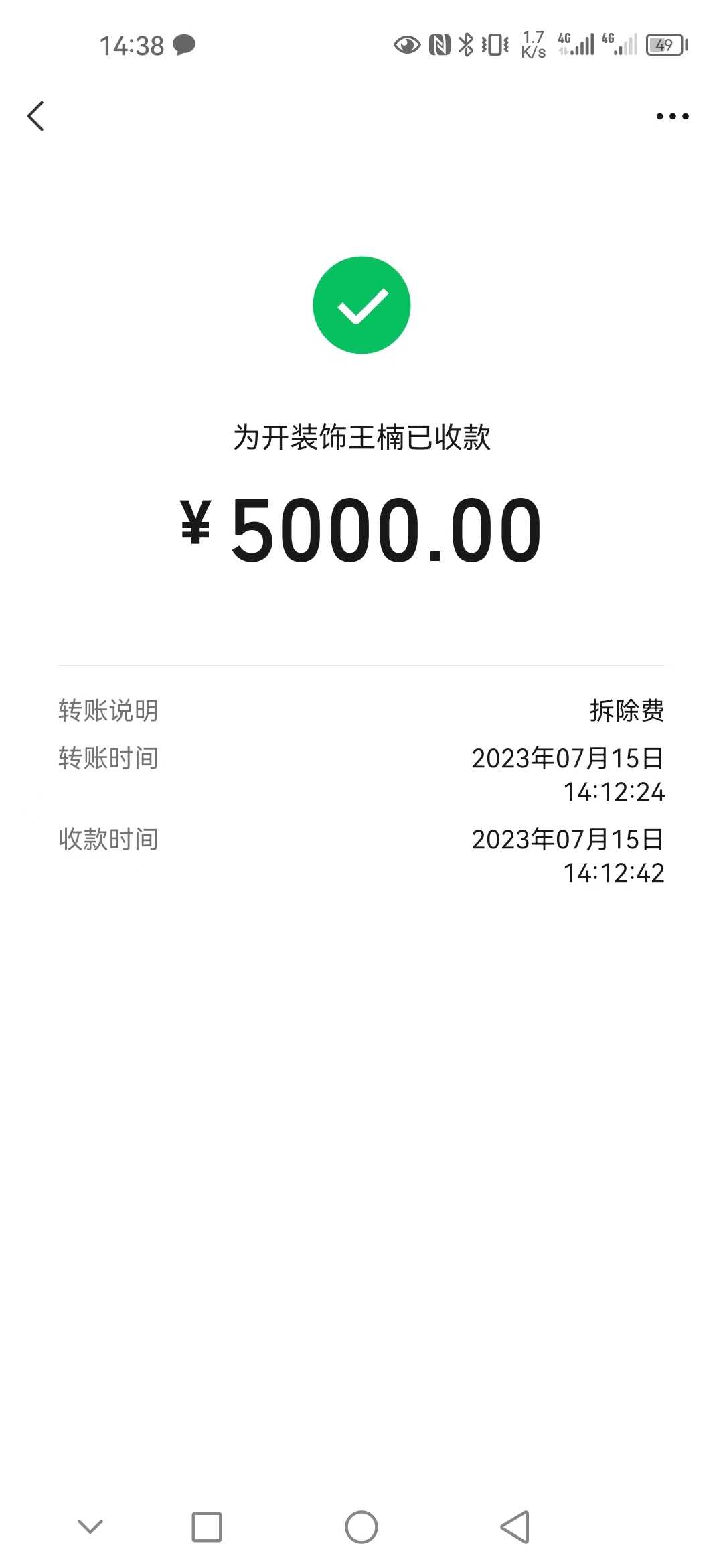 7.15水电验收,水压测试也没叫我去现场,拍了个6秒的视频给我,在他们承诺会尽快整改的情况下,我签字验收了水电,支付了第二期装修款21160元,并要求尽快整改。