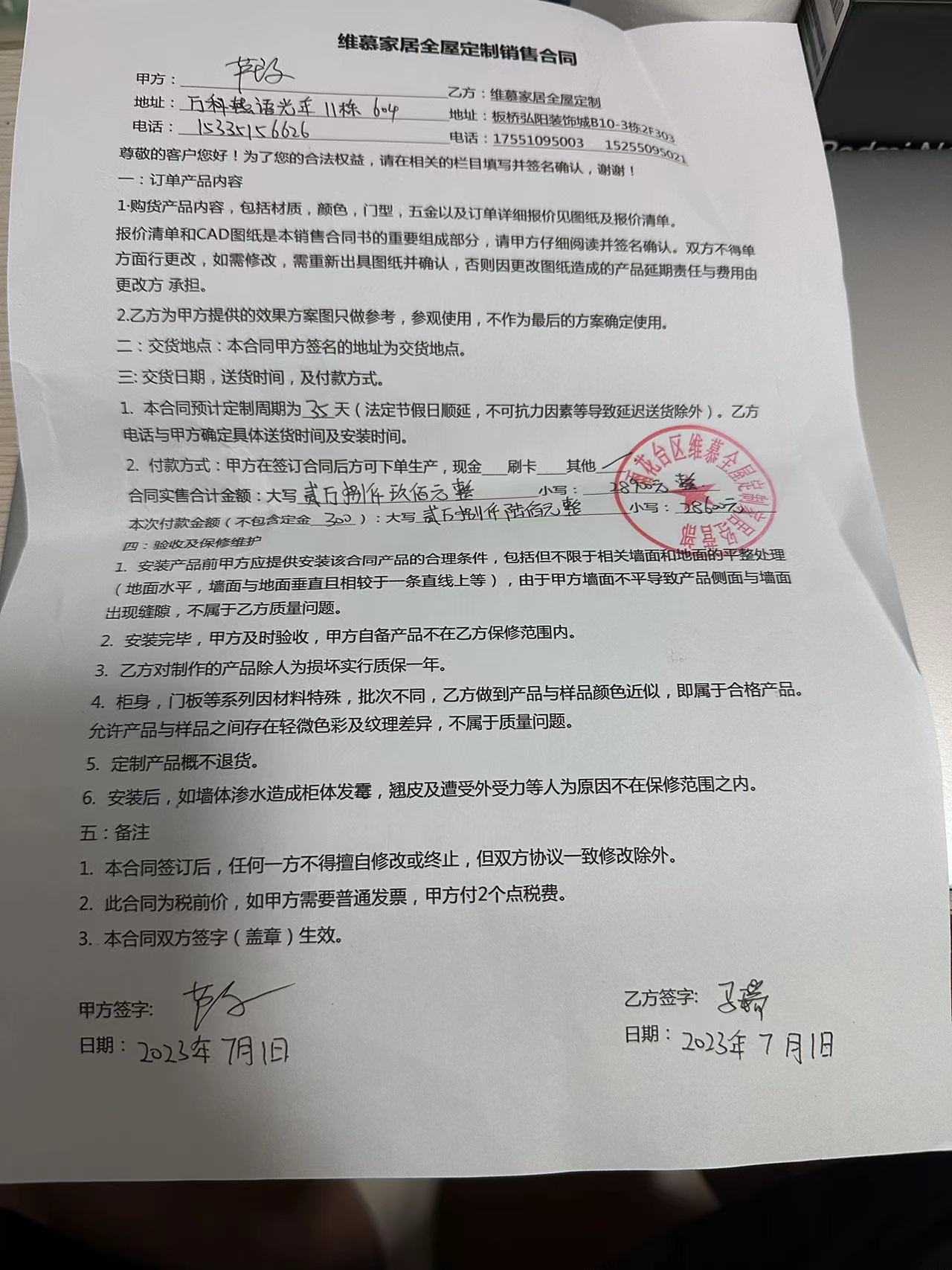 对 维慕家居全屋定制 的投诉依据: