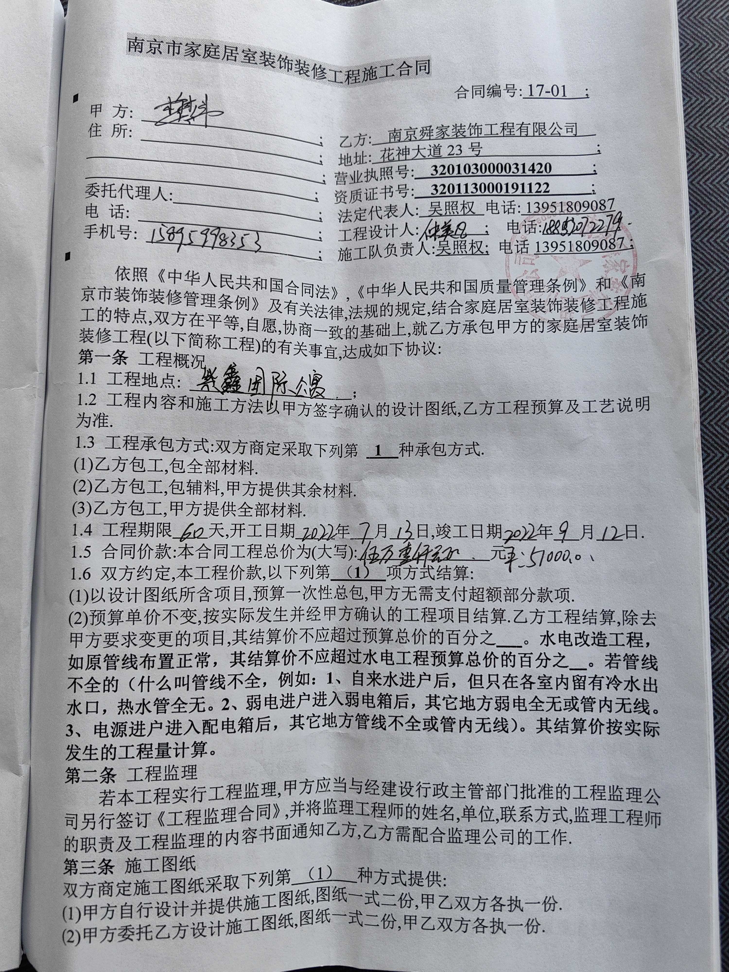 对 南京舜家装饰工程有限公司 的投诉依据: