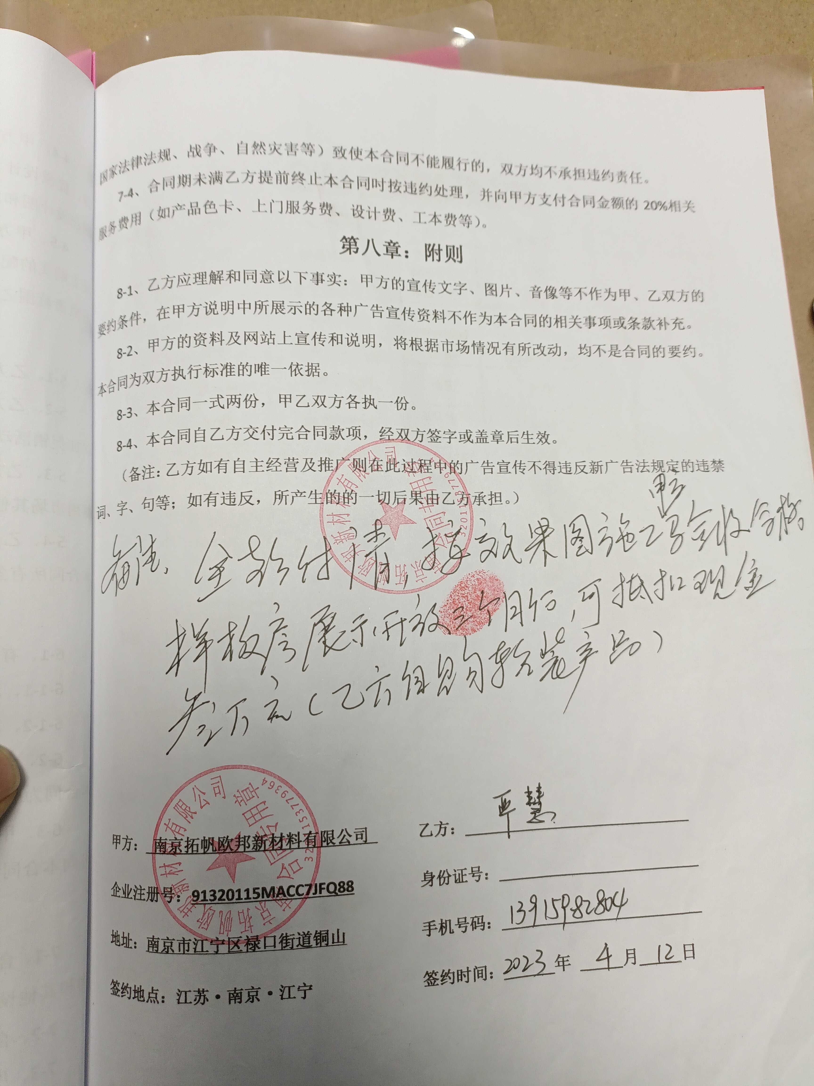 | 投诉类型 | 虚假活动 | 投诉人 | 白** | 被投诉单位 | 南京拓帆欧邦新材料有限公司 |
