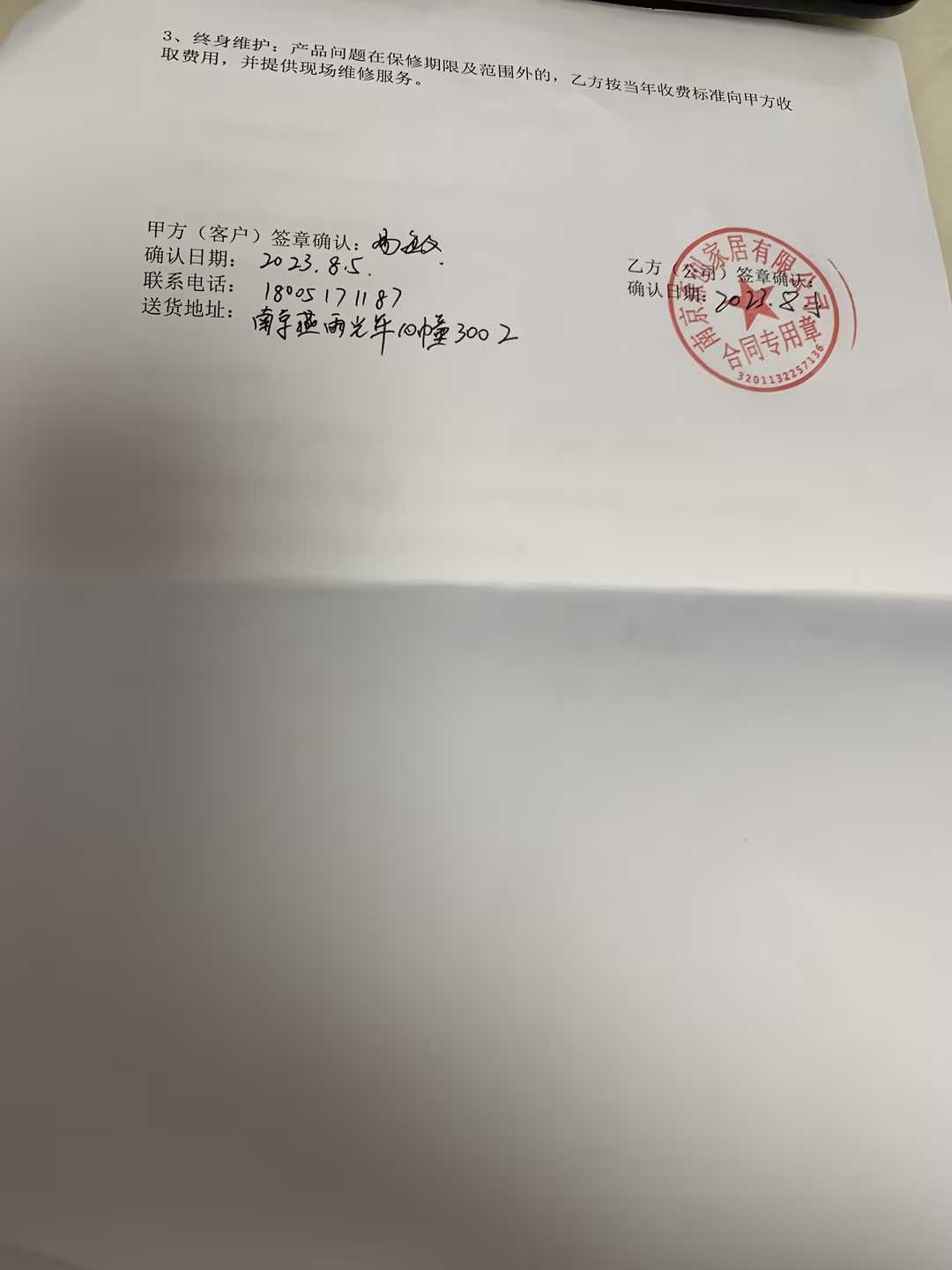 7月31日和南京森创公司签订了全屋定制方案,付了定金1000元。8月6日签订了合同,要求付全款,又支付了3万7千元,公司联系电话:13260801868