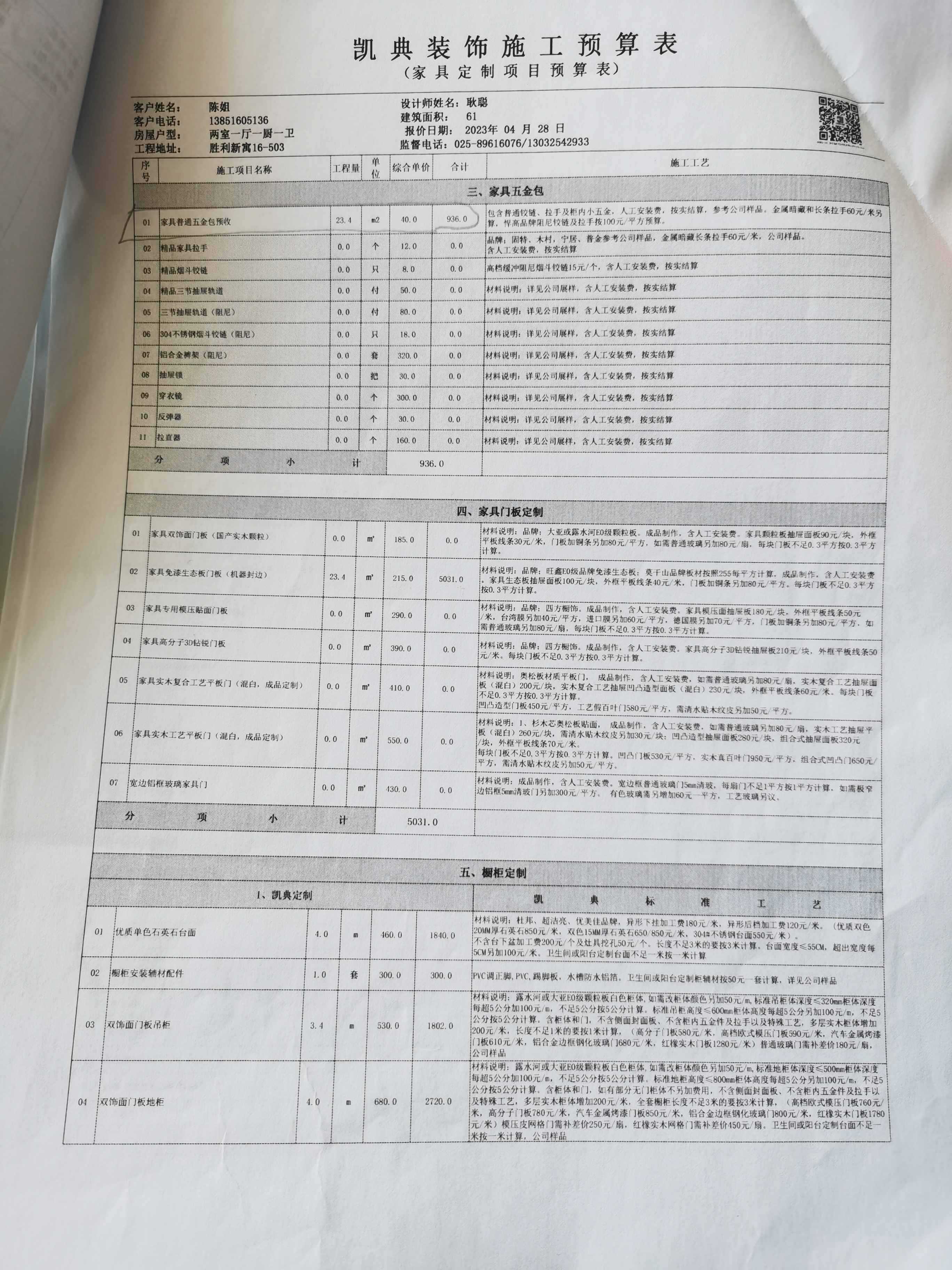 本人认为:凯典装饰号称26年的老品牌,自有装修团队,承诺:终身质保;干不好、不要钱;验收满意、再付款。可是我家这房子,刚装好才2个月不到,就发生这样的质量问题,和他们承诺的完全不吻合,凯典装饰有欺骗消费者嫌疑,工程质量一塌糊涂,装修过程遇到问题,也是一语堂,客户的利益根本得不到保障,望:有关部门,可以严肃查处,责令凯典装饰尽快处理我家房子的柜门问题及隐患。