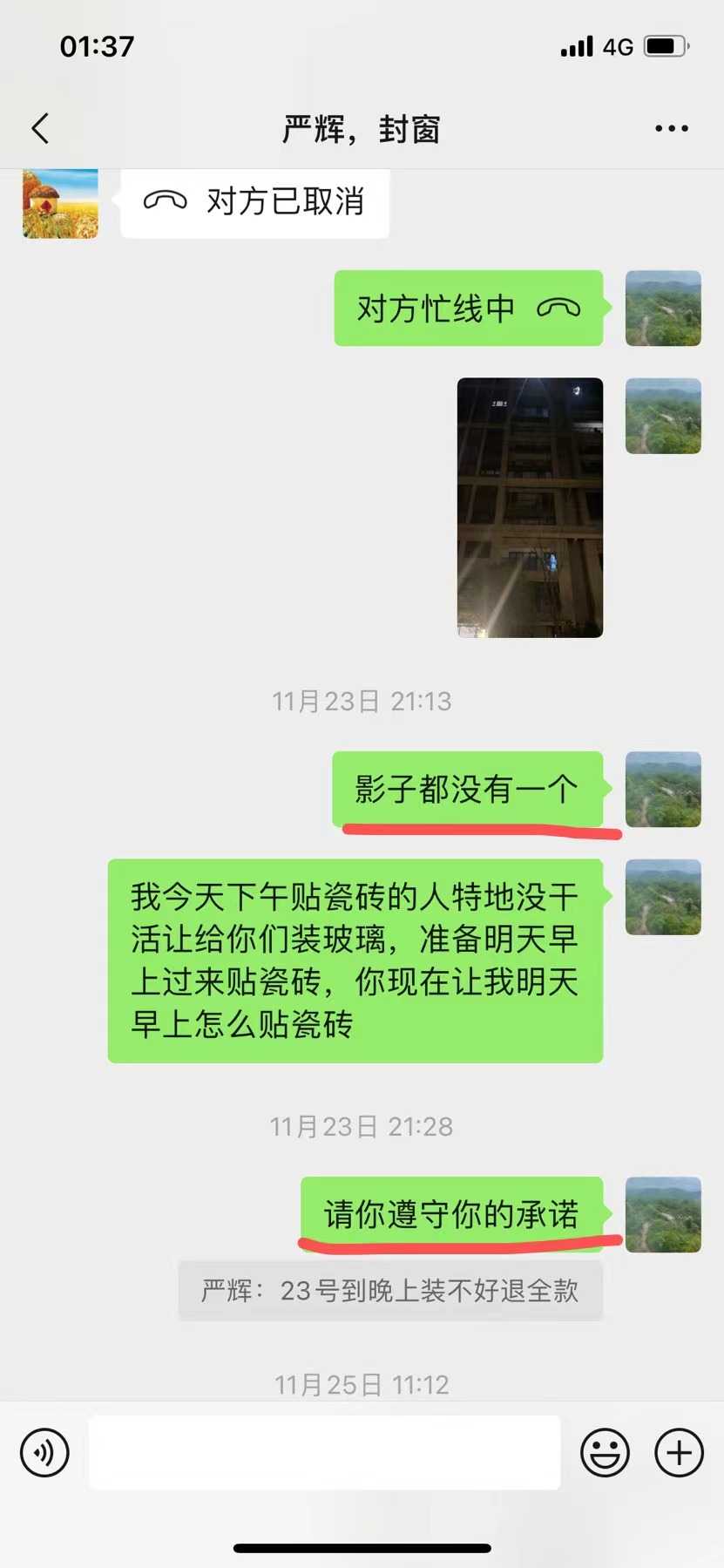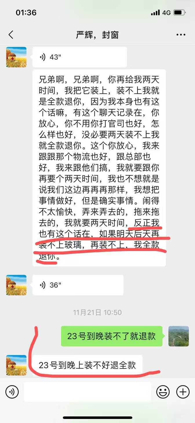 本人于2023年8月19日与该单位签订南阳台及北卧室封窗合同,合同金额为28000元,合同签订后本人随即支付90%的预付款,共计25200元,合同中注明合同签订后25-30日到货且玻璃厚度为6mm,送全屋纱窗,本人于10月24日起通知该负责人(严辉,电话:13776572341)可以安装南阳台窗户,该负责人一直未按合同安装日期履行且一再拖延,过程中该负责人承诺免除剩余10%的合同款后直至11月25日才安装完成,安装完成后本人发现窗户厚度未按合同要求6mm,实际为5mm,且未送全屋纱窗,后本人又催促该负责人安装北卧室窗户,该负责人又未能在承诺日期内完成安装,后此人联系不上,该单位未在合同工期内完成安装,且安装质量不符合合同约定,本人觉得该单位未按合同约定履行合同精神,存在欺诈行为,本人要求该单位退还已支付合同款且赔偿3倍金额。