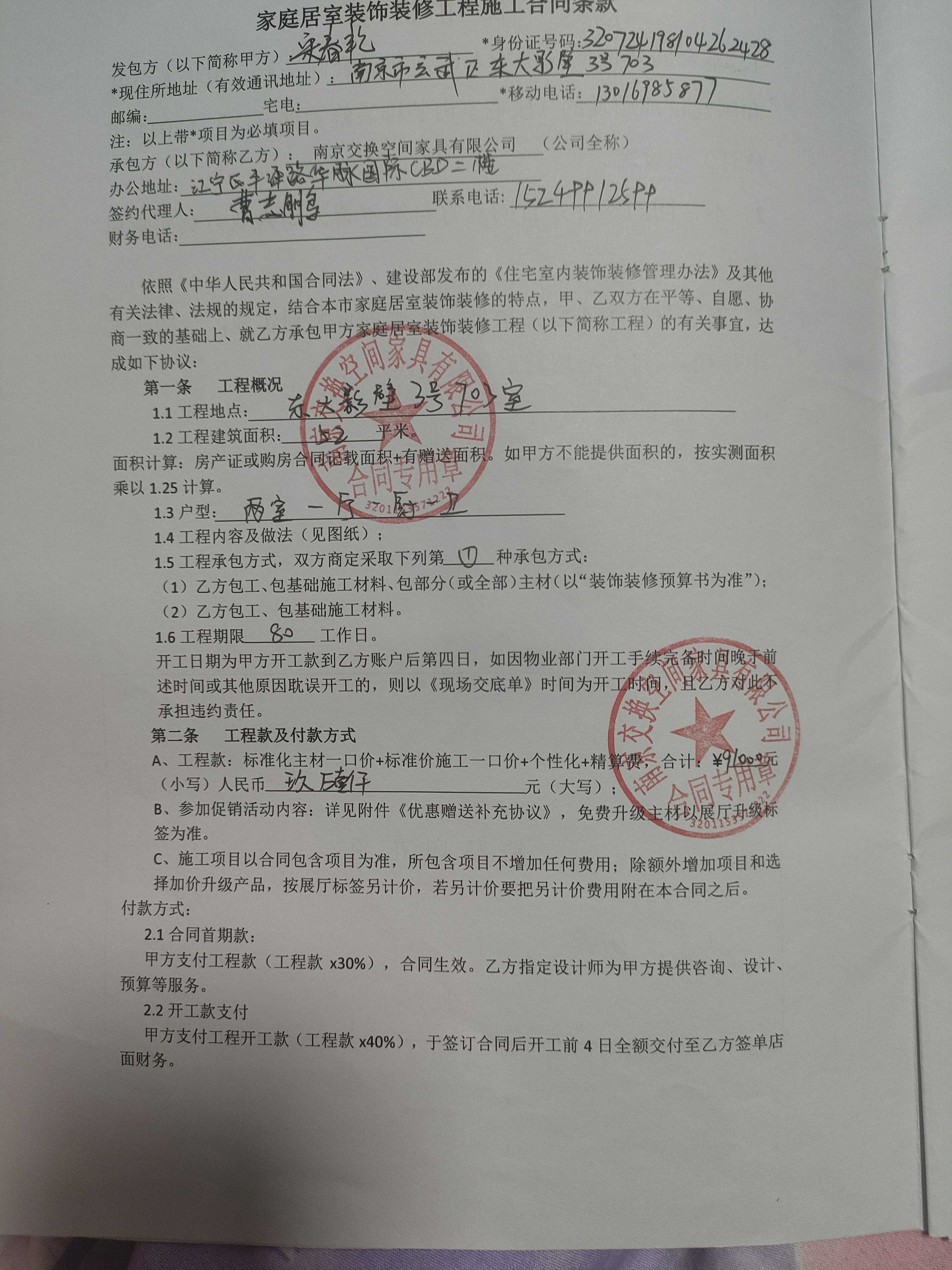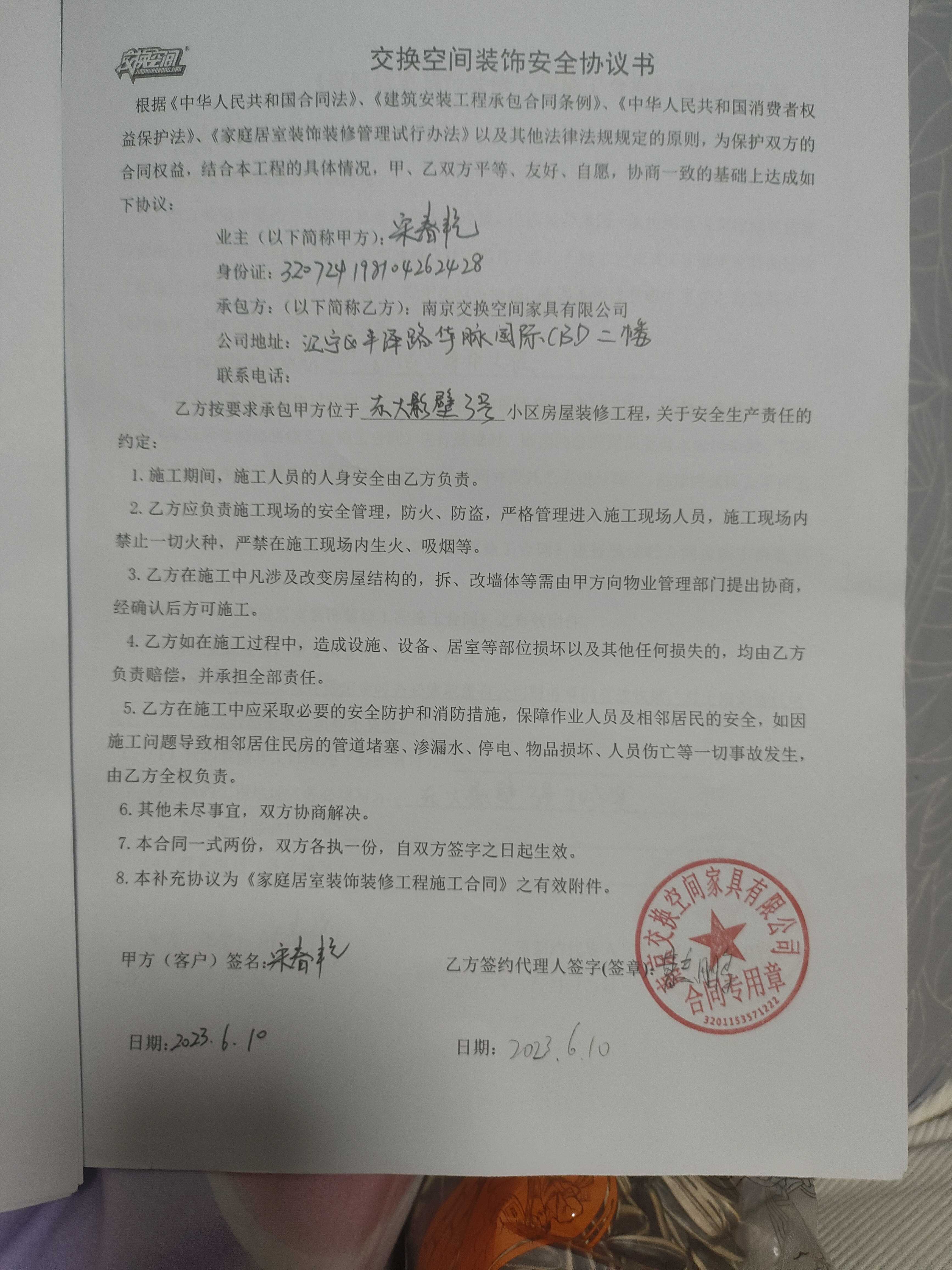 | 投诉类型 | 拖延工期 | 投诉人 | 宋** | 被投诉单位 | 南京交换空间家具有限公司 |