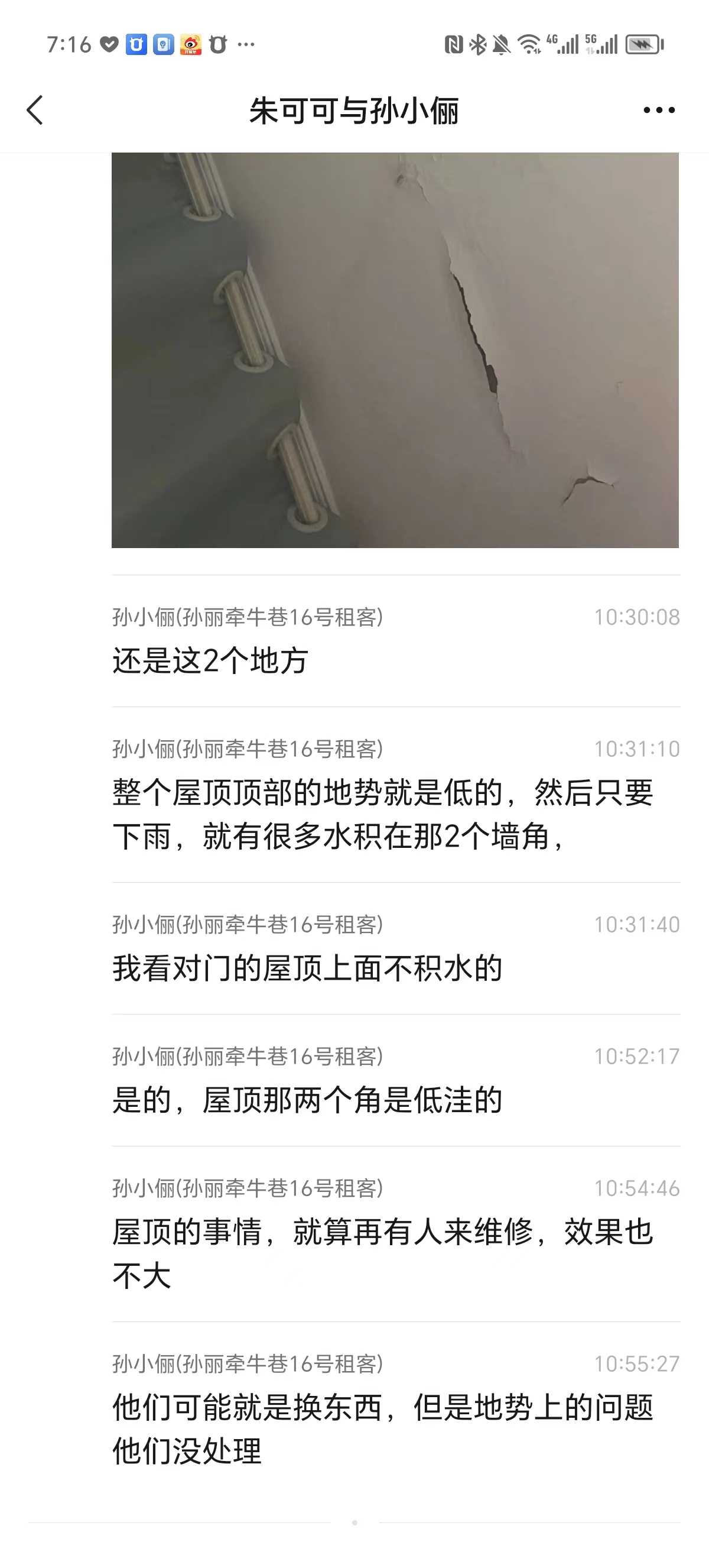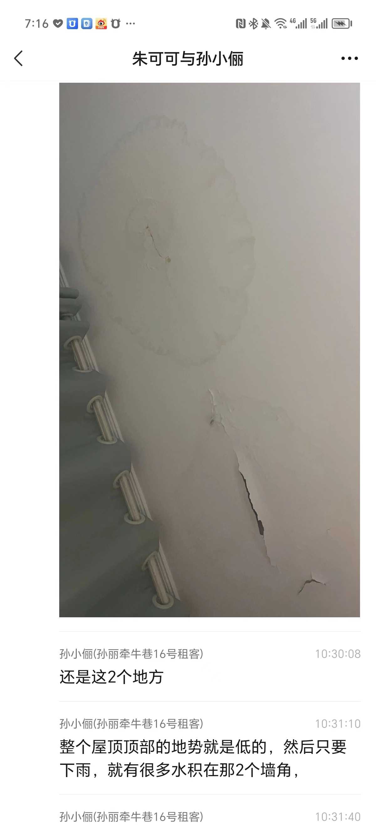 3.之前上门看的说从室内做防水的方式,只有一个指甲盖大小的洞就行,而实际做完有2平方左右是黑色的墙顶未修复,影响租客与下次租房价格。