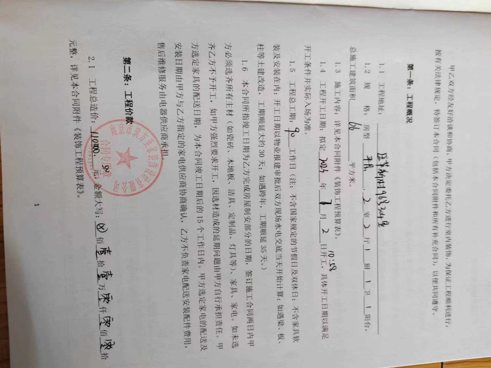 长期在外地工作,考虑到小孩上学问题,装修南京的房子。我选的是该公司小户型铂金(全保)装修套歺、付了设计费,总计11万元、另付了他们公司指定的拆除、铲墙费用14500元。