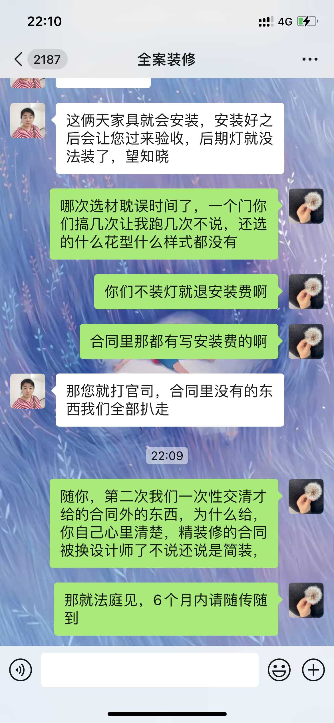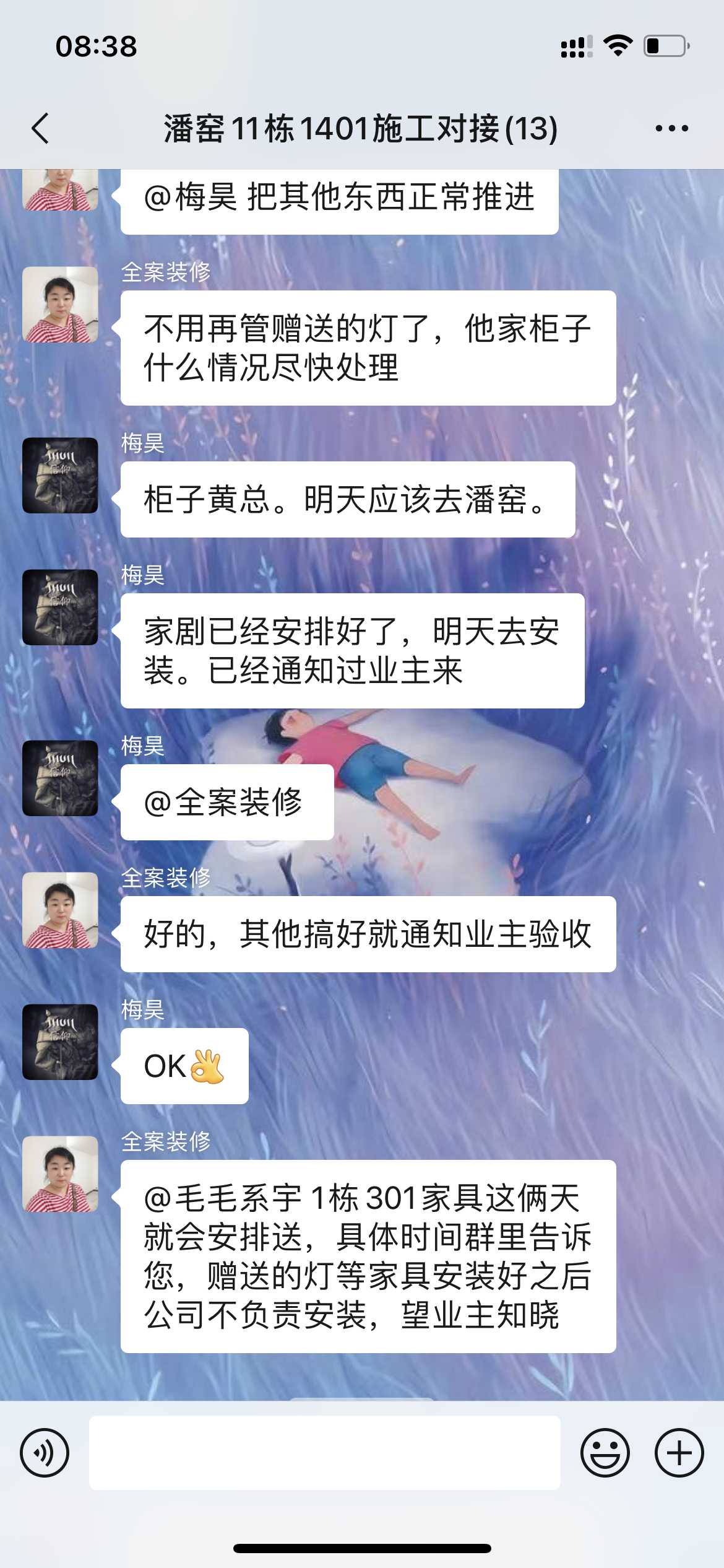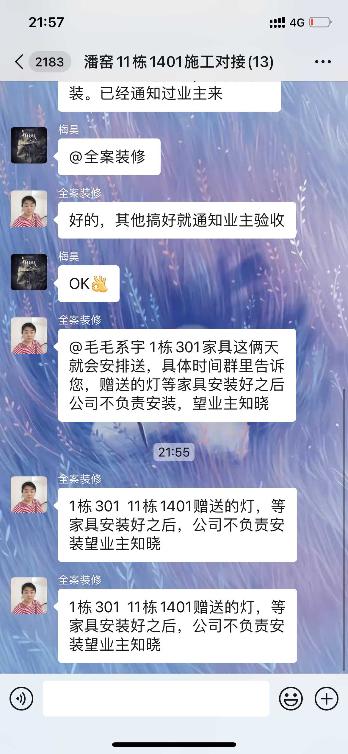 投诉请求事项:1.合同期间未完工,要求退合同外违约金,30元/天赔偿损失,我于2023.8.25号和该公司签订装修合同,工期80天,超出时限太长,沟通无果,特此要求赔偿工期,2.装修款项全部结清,地板,开关,水槽,三角阀这些未在装修公司选择,按照合同收取费用的7折退给我,银行卡已发给装修公司,还有电器13000未按约定时间,皆以财务审核未打到我卡里,要求尽快给出赔偿期限3.2023.1.19号微信群里给我选材链接,1401和301的灯具,我们按照时间给出灯具图片,装修公司先是以全铜的灯具不能送要加钱,不认可该说法,而后以不是公司图册为由说自己发错链接了在群里,让重新选,最后说送的灯价值只能在1000元以内,我们不懂什么铜不铜,只知道装修公司每次能选的东西都会在群里发,我们也是一板一眼的按照他们发的来选,这次选材也是,但更离谱的是他们最后说这个厂(志诚照明)倒闭了,我就反问她一句,怎么每次给我选材,都选好了,你们工期慢,最后到安的时候都说让选别的东西,一问都是不合作了,一开始的双虎家具也是签的给发的宣传照片,等选好了说不跟厂里合作了,让选极简家具,还有石材台面也是,定制群里都选了,后来又说公司不合作了,这次不是志诚照明倒闭了,而是装修公司一贯用的手段,我多次和他们交涉包括他们的售后电话13851954689都说设计师还有销售经理会联系我,结果等了快一个月都没人约我线下沟通,最后只能打他们老板钟韦电话1362****555,多次无人接听,忙还是不想接不得而知,赶巧换号打通一次是一女员工接听表示是公司备用机,跟她反映事情,她说跟设计师还有销售经理对接,3.23号肯定会有人找我沟通,结果还是没有,他们公司的诚信呢,至今工期遥遥无期,无法开展,诉求就是作为公司老板应当面解决问题,业主问题微信沟通多次还有12345投诉多次无人过问,我们301和1401房子现在交付都7个月了,工期迟迟未完工,里面问题一堆,选材受阻,别人二批三批拿房的都装好了,我们一批的被晾在一边,希望家委会能给我主持公道,给我解决这个难题,谢谢.