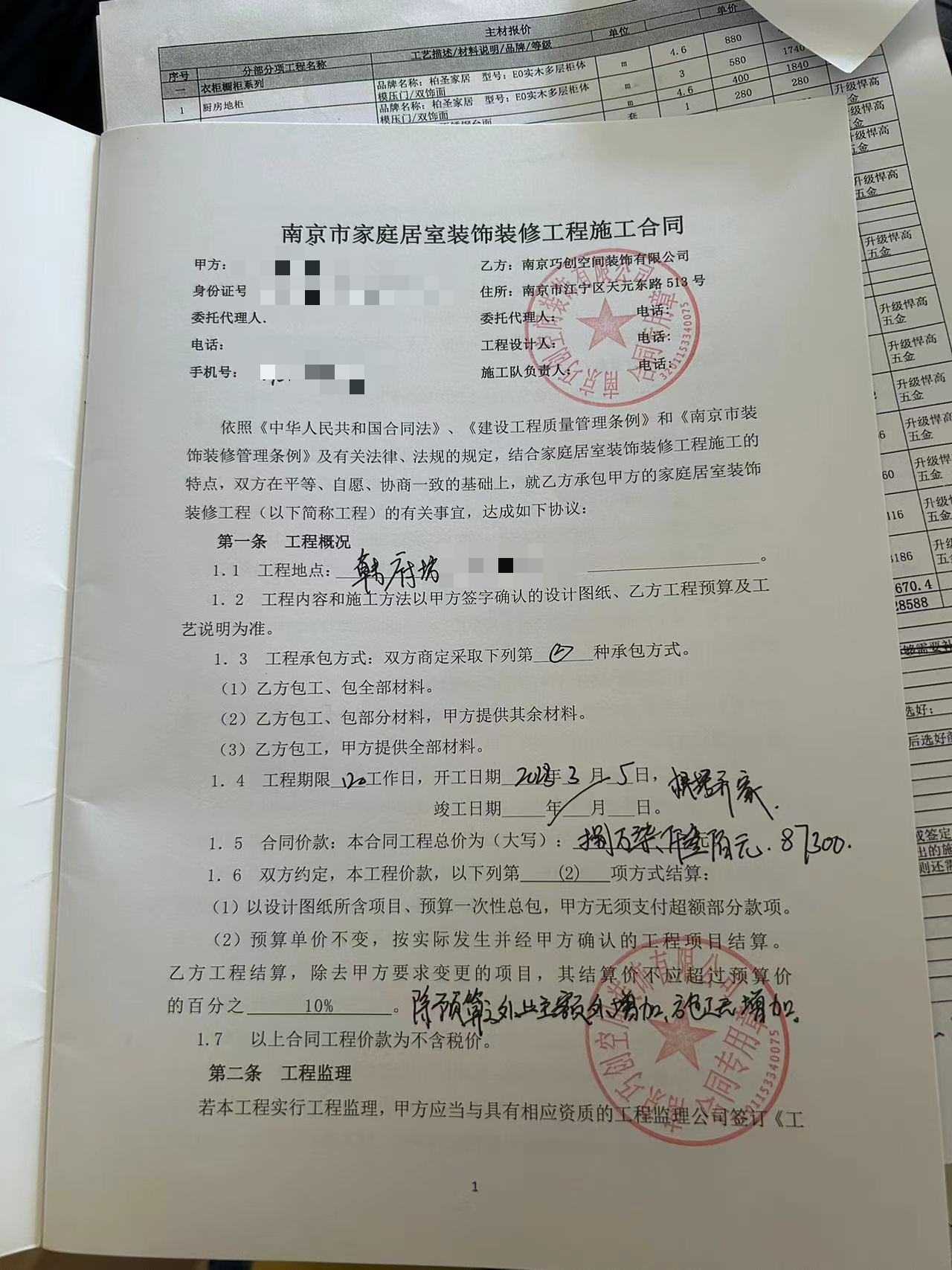 巧创空间装饰 所在卖场:南京装修公司,点击查看此卖场相关投诉信息
