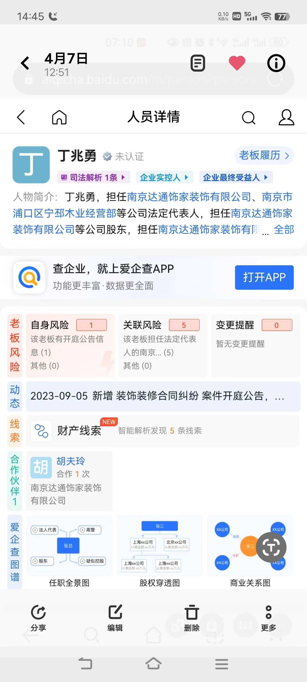 | 投诉类型 | 拖延工期 | 投诉人 | 杨** | 被投诉单位 | 南京达通饰家装饰有限公司 |