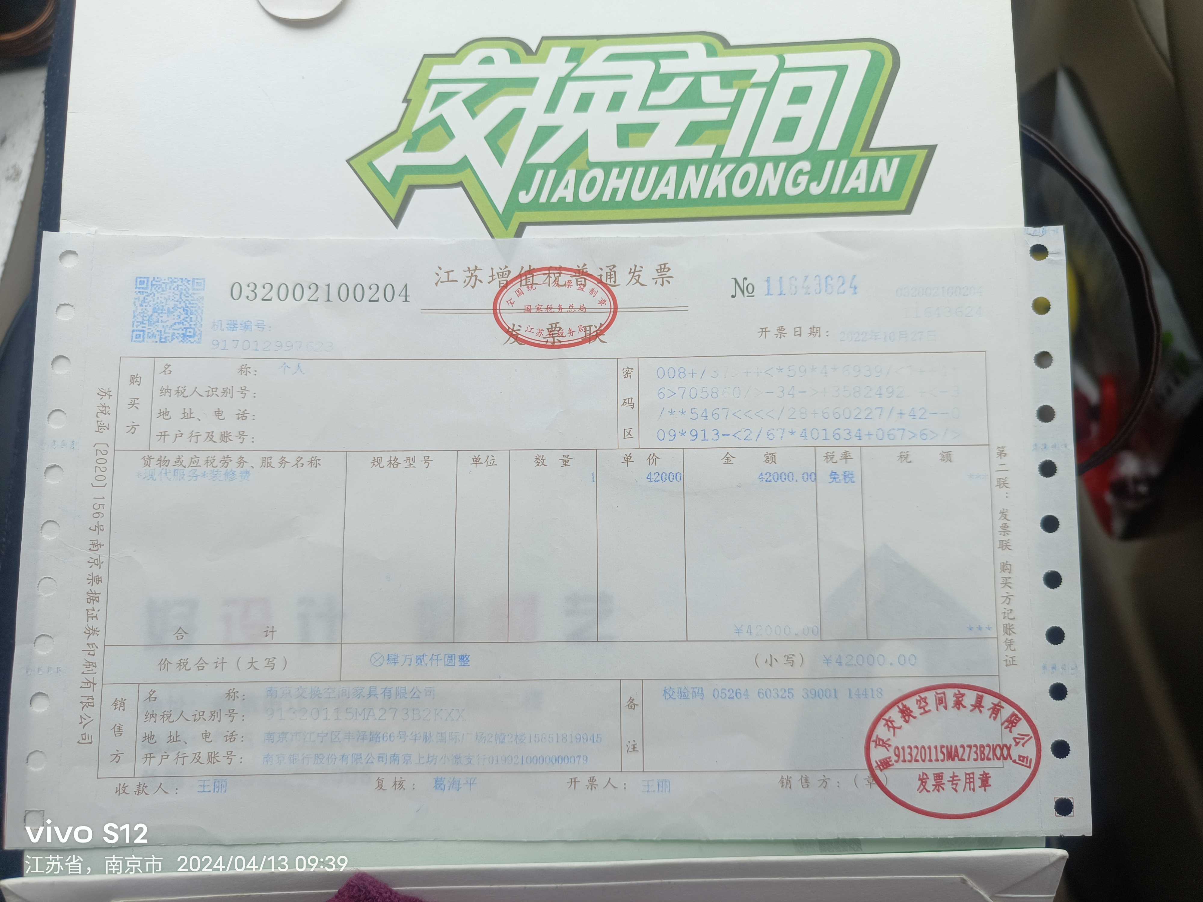 | 投诉类型 | 不讲诚信 | 投诉人 | 郭** | 被投诉单位 | 南京交换空间家具有限公司 |