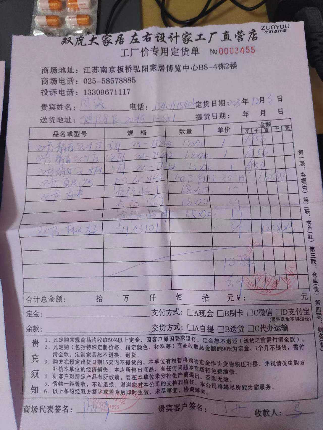 | 投诉类型 | 不讲诚信 | 投诉人 | 周** | 被投诉单位 | 双虎大家居左右设计家工厂直营店 |