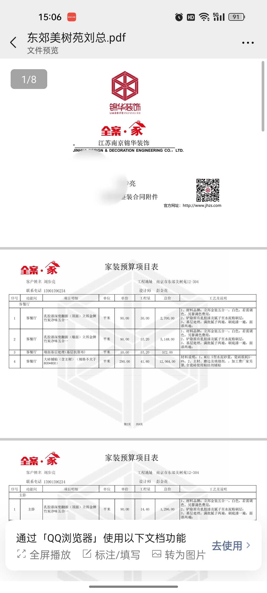 对 南京锦华装饰工程有限公司 的投诉内容: