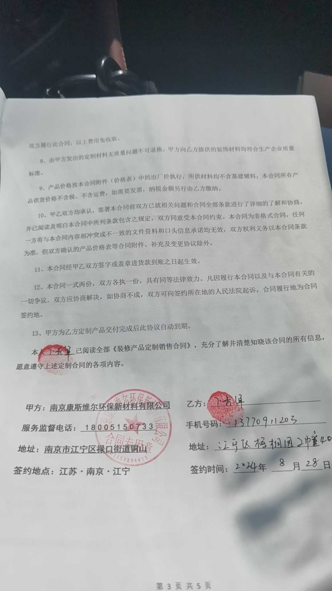 对 南京康斯维尔环保新材料有限公司 的投诉内容: