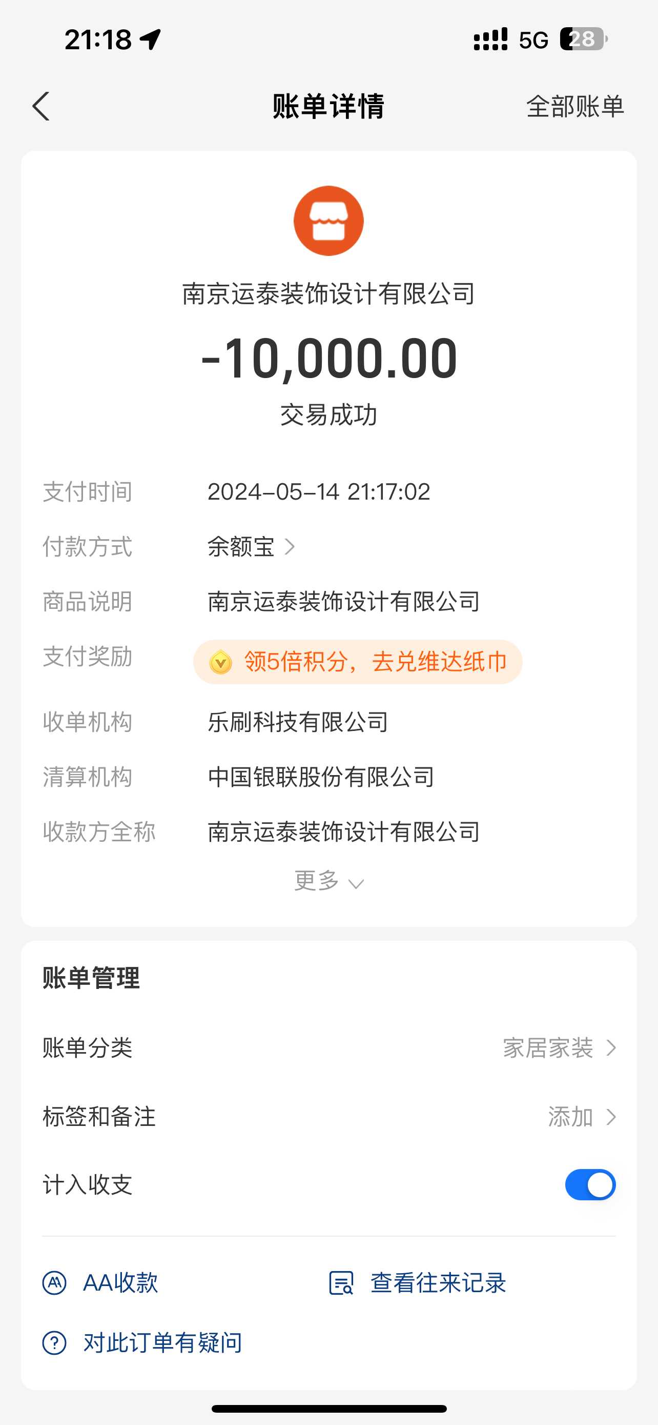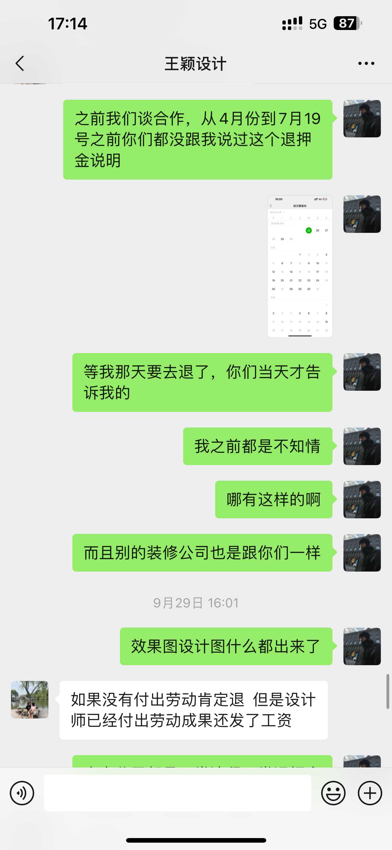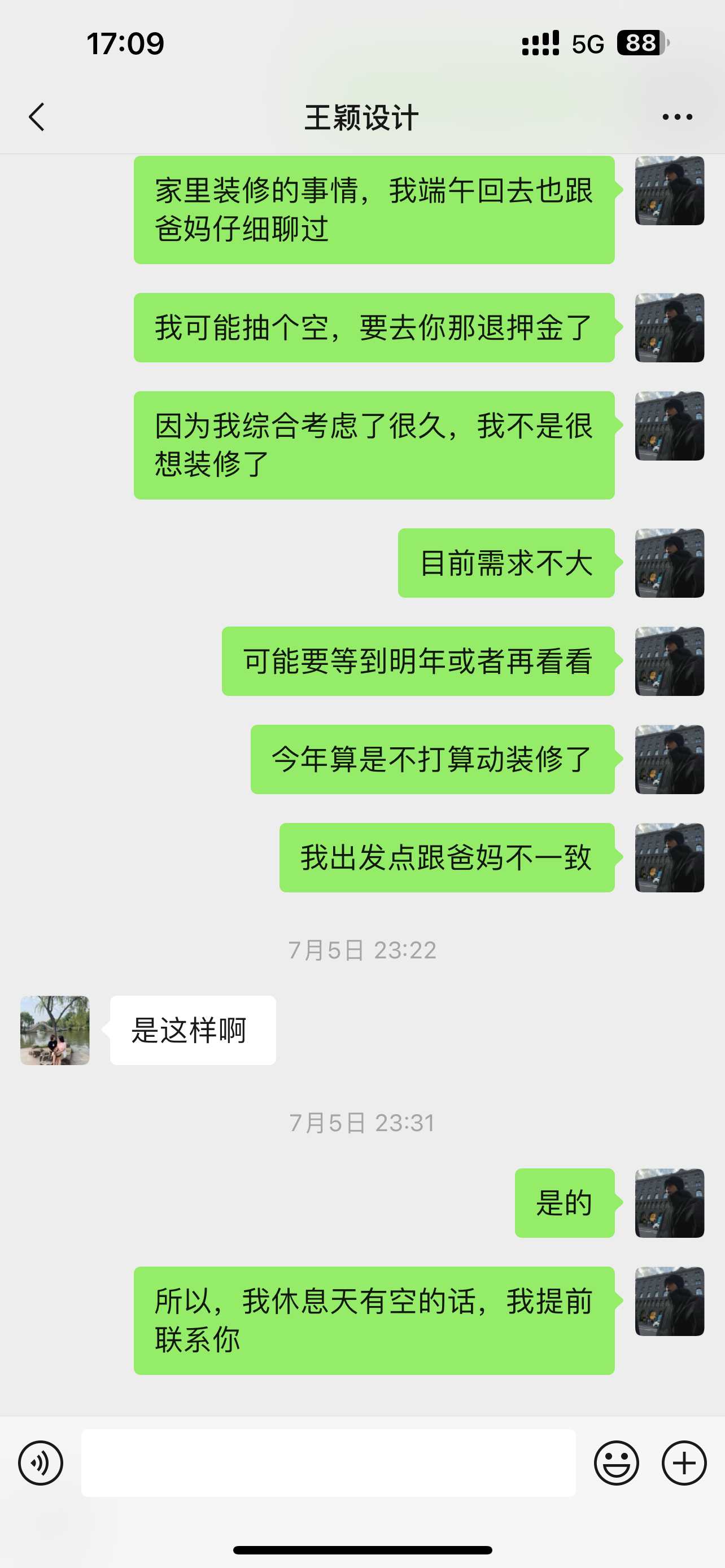 今年5月14号,到运泰装修公司,头一次跟他们公司接触了解,当天就交给他们1万块钱的订金,聊了一下午,一直跟我宣传他们公司怎么好怎么优秀,然后可以试着合作。他们也是承诺后期这个订金是可以退的,我也是当天告知我后期不一定选择你们家公司装修合作,可能是其他家装修公司,这个订金也是可以退的,他们公司也是承诺后期不选择他们家,也是把这个一万块钱 退给我的,期间过程中,我也是跟其他几个装修公司了解与合作,当天我也是跟他们告知这个情况的,他们也是知情的,当天他们公司三个人一直跟我商量然后我就交了一个订金一万块钱,发票上面也是写了(可退)的!后期过程中也是跟其他几家装修公司一起了解和合作,两个月时间,我综合考虑家里情况和需求,家里一致商量房子今年不装修了,今年装了也没人住,爸妈常年不在南京,我一直住单位公寓,长时间不回家,也没有伴侣,以后等找到伴侣考虑到结婚再继续装修房子。我7月5号就告知他们公司,综合考虑我今年打算不装修了,他们也是了解的。两星期后7月18号告知我要去他们公司进行退订金手续,而且从五月份到我当天去他们公司进行退订金这期间,也是没有告知我这期间会产生费用扣除和退订金规范,而且他们公司是免费设计的!!!他们设计费都给我算上了,真的气死人了!完全不讲诚信,两个星期时间,他们都没有找过我退订金的事情,还是我主动去他们公司进行退订金手续。7月19号当天去的他们公司,他们公司就发了他们公司的退订金规范,从一开始的5月14号到7月5号,两个月时间不到,期间他们从来就没有告知过我有退订金规范,我7月5号告知他们公司要去退订金,18号当天去的公司走流程,这两个星期中也没有告知我有退订金规范!其次我18号当天我陆续去了其他几家公司,都是进行退订金流程,别的公司都很正常的走流程退还原有账户,没有一点扯皮和困难,很轻松的见面签个字就退了。