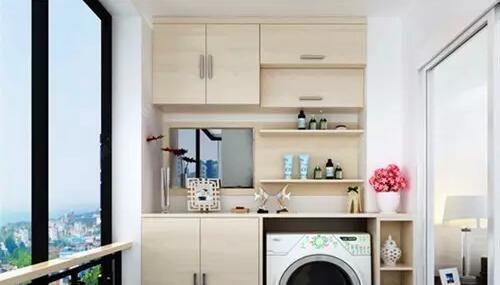 14、阳台柜子:如果屋子面积较小,那么可以考虑在阳台放置一些柜子,和洗衣机相结合,放置一些洗衣液衣架之类的东西,很是方便。