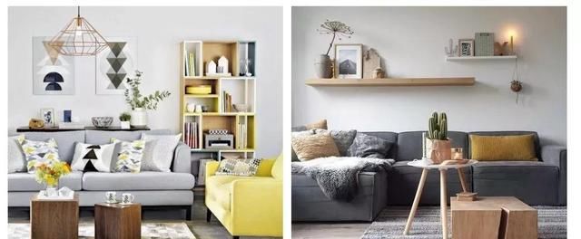 同色系的白墙 浅灰色的地板,黄色 灰色的软装搭配,就只是因为颜色纯度的不同,就给人一种很不一样的感觉,一个是偏向于轻快明亮风,另一个则是沉稳简洁风。
