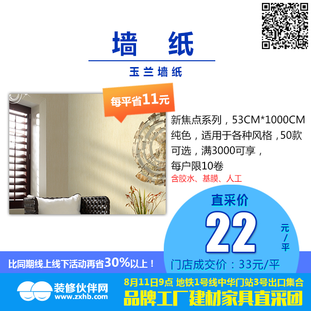 新焦点系列的玉兰墙纸,适用于各种装修风格,50款色系可选,总有一款适合你的家,直采超低优惠可不能错过啊!