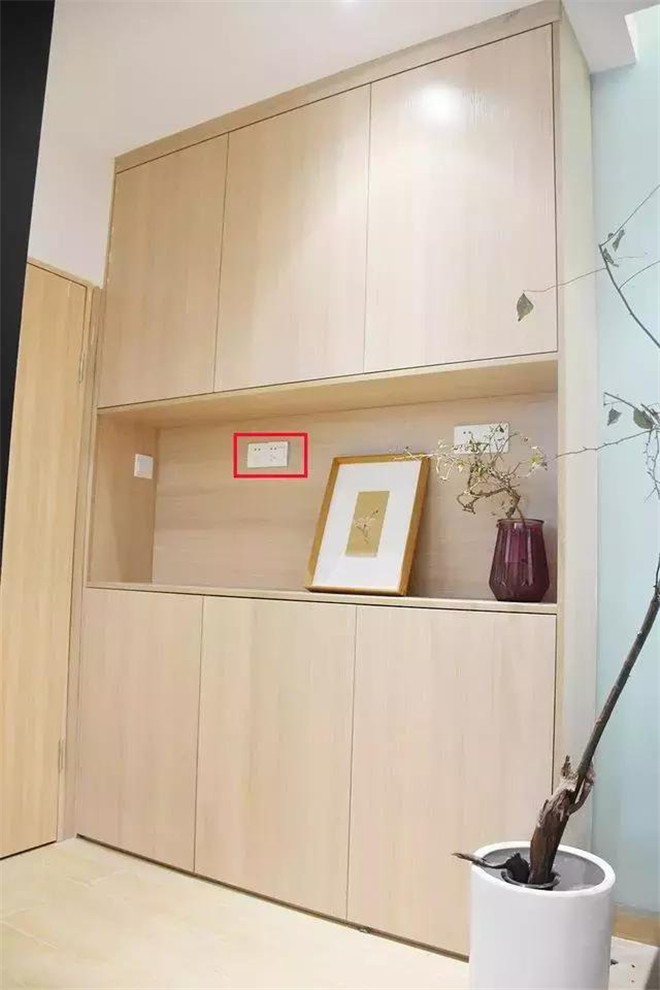 一般玄关位置都会设计鞋柜,鞋柜上方可以用来摆放物品,装修伙伴网建议鞋柜最好预留一个插座,以后使用小家电的时候会非常的方便,比如有一些人会习惯的将手机放在鞋柜上,现在智能家居这么多,万一以后买了智能鞋柜呢?所以还是有备无患吧。