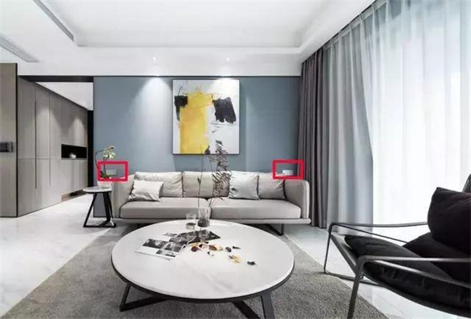 客厅是家里中最重要的功能区之一,家用电器多而杂,所以插座必须配备到位,首先是需要一个空调插座,然后是电视机,电视机至少要配备2-3个插座,电视机一个、机顶盒一个、路由器、音响等等。沙发旁边也需要布置插座,虽然沙发上附近不会使用到太多的电器,但是可以对手机进行充电,如果想要在沙发附近放置一个落地灯的话,也是需要插座的。