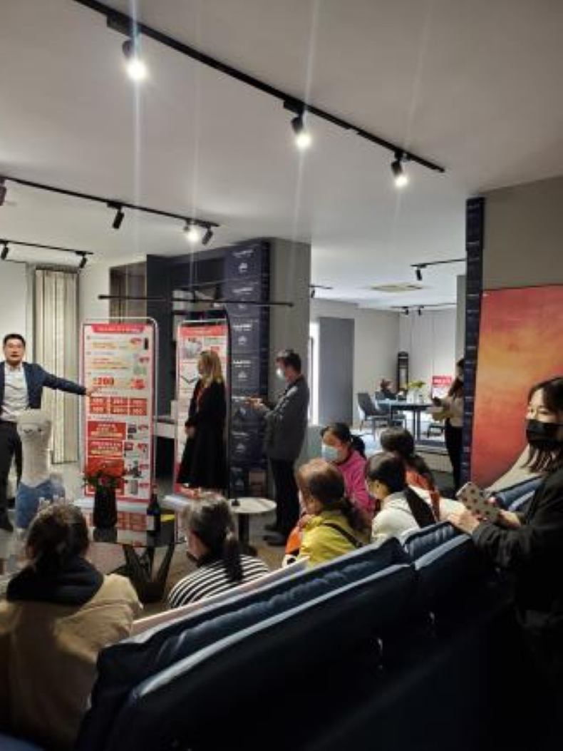 本次麒麟家居工厂旗舰店重装开业活动,由装修伙伴网金牌推荐官主持、介绍活动政策,麒麟家居展厅工作人员对产品进行讲解、演示。