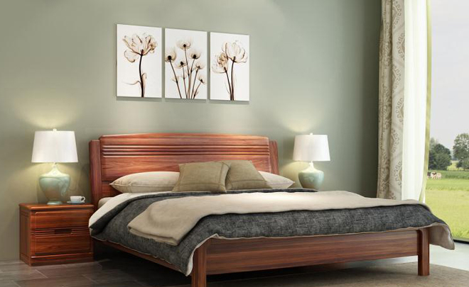 用材:床架(床头、床尾、床边)采用优质进口非洲加蓬胡桃木、全实木排骨架采用新西兰无节松木、优质东泰品牌五金配件。密度中等的硬木纹理直而清晰,结构细而均匀,抗压能力较强,不易开裂变形、抗腐能力强、弯曲性能良好。