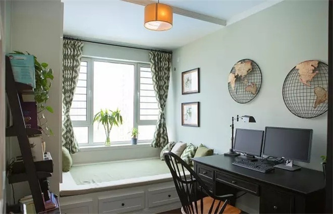 想在房间中添加一个学习工作的区域,飘窗也是不错的选择。如果飘窗面积足够大,甚至可以摆放书柜及书桌,如同一个小书房。