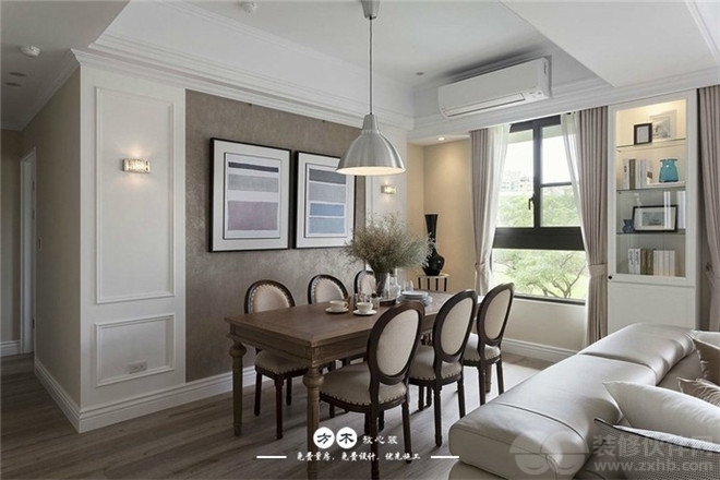 木制的餐桌搭配了复古式的皮质餐椅,整体显得干净整洁、简约大气!经典的美式风格,给整个空间增添了一丝异国风情~