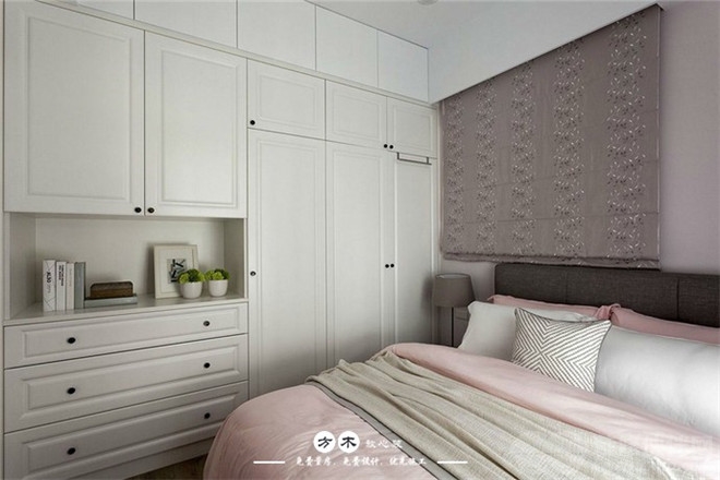 卧室到顶的大衣柜,采用了简约素雅的白色,流畅的线条在视觉上更为舒适,同样也给卧室预留了充足的存储空间。软包大床,厚实的床品搭配,享受安稳的睡眠,放松身心还是很不错。