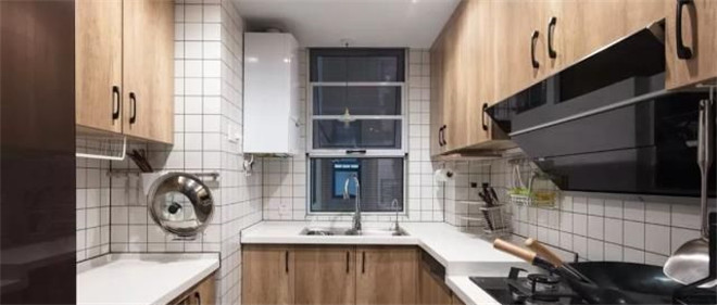 原木色的橱柜与墙面小清新的白色小砖形成对比,两个元素相碰撞,空间却意外的和谐,身处这样一个厨房,做饭也成为一种享受。