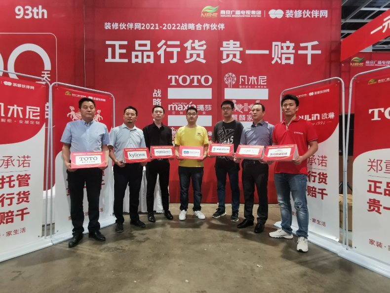 “正品行货 贵一赔千”,为了打造放心的家装采购环境,助力消费者安心消费,严控串货、售假等现象,本届家博会装修伙伴网携手六大南京知名家居品牌签署正品承诺,让消费者在享受实惠的同时,买到放心的家装产品。装修伙伴网副总经理周国刚、TOTO卫浴南京区域总经理李光强、玛莎淋浴房南京区域大区经理邵磊、欧琳水槽南京区域总负责赵晨、马可波罗苏皖分公司总经理助理赵丽春、凡木尼全屋定制总经理李启帅以及麒麟家居全国营销总监吴天伟出席签约仪式。