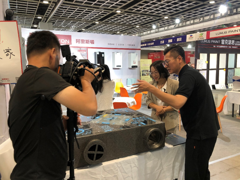 广电主持人韩轶在线直播展会盛况,梦百合、什木坊、凡木尼、阳诺冷暖、吉斯家具、麒麟家居、颖博门窗、九鼎装饰等品牌参与直播,直播间在线观看人数高达5万人。