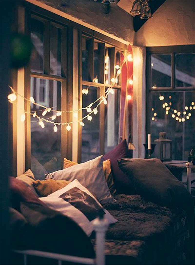 串灯可以挂在任何你想挂的地方,窗户旁、门上、床头、墙角、书架、圣诞树上甚至玻璃罐子里!
