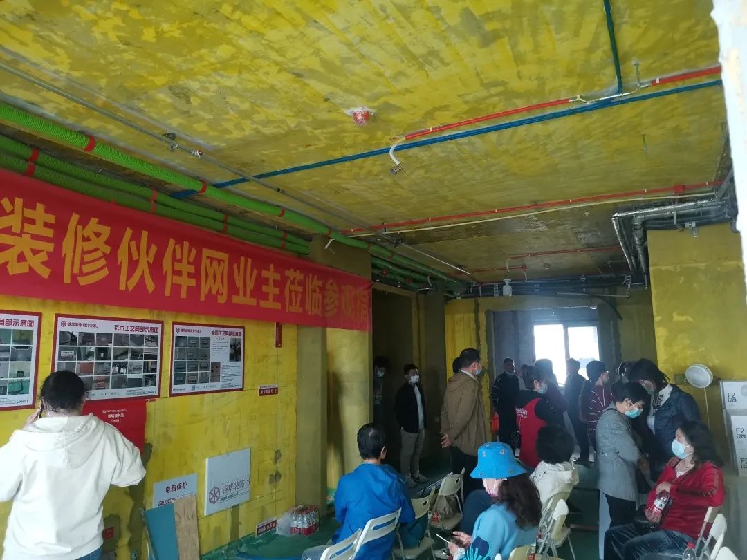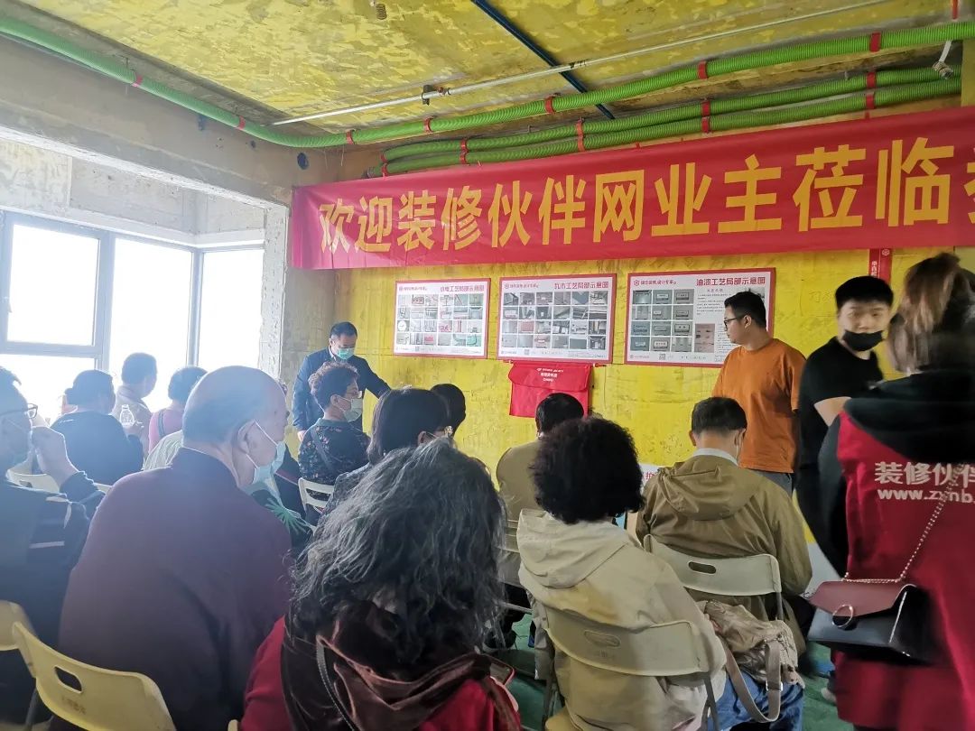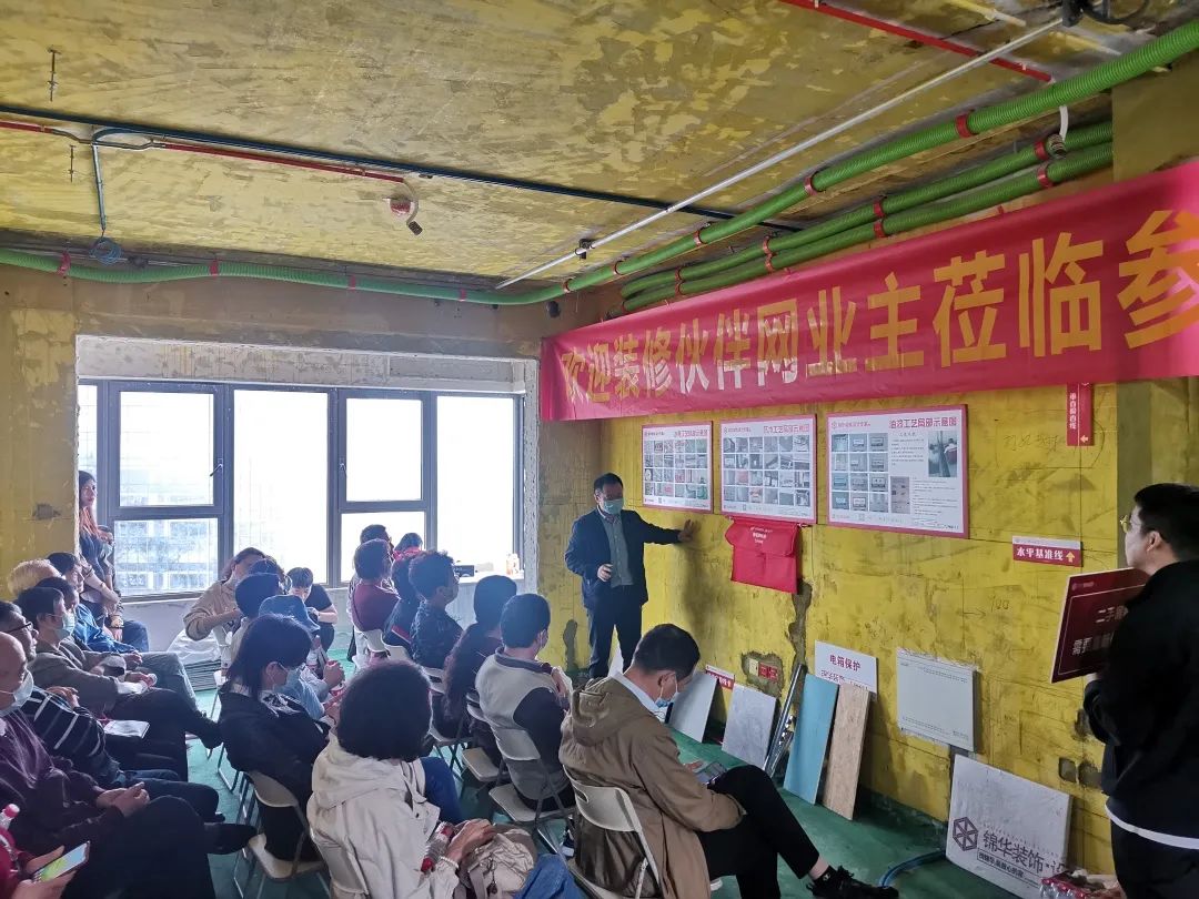 活动当天,数十户装修业主乘坐装修伙伴网的免费大巴前往世茂天誉参观锦华装饰在建工地。工地现场由锦华装饰工程部负责人讲解施工知识,设计师为业主提供一对一解答。