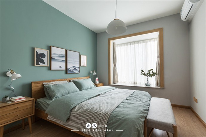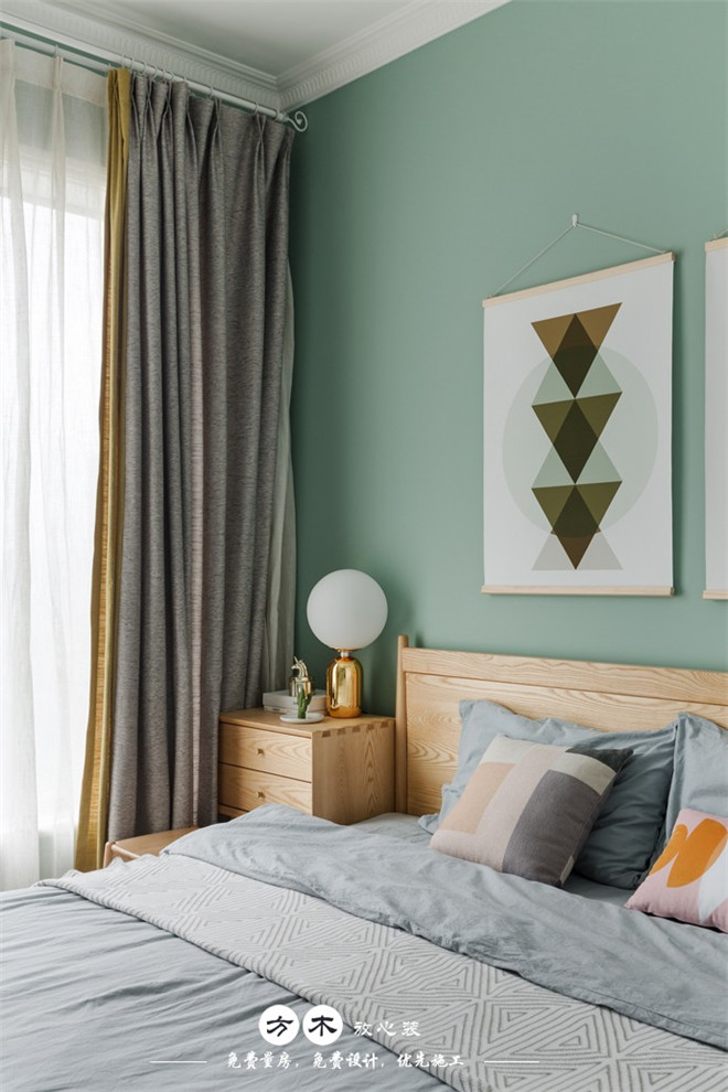 客厅与房间都采用了哑绿色作为墙面漆主色调,留白的方式让空间增添了活跃的气息,一改沉闷之感。