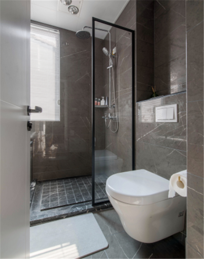 卫生间同样也延续着极简主义,没有过多的繁琐装饰,自然而又清爽!