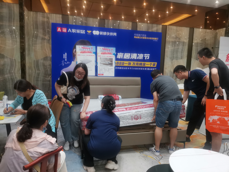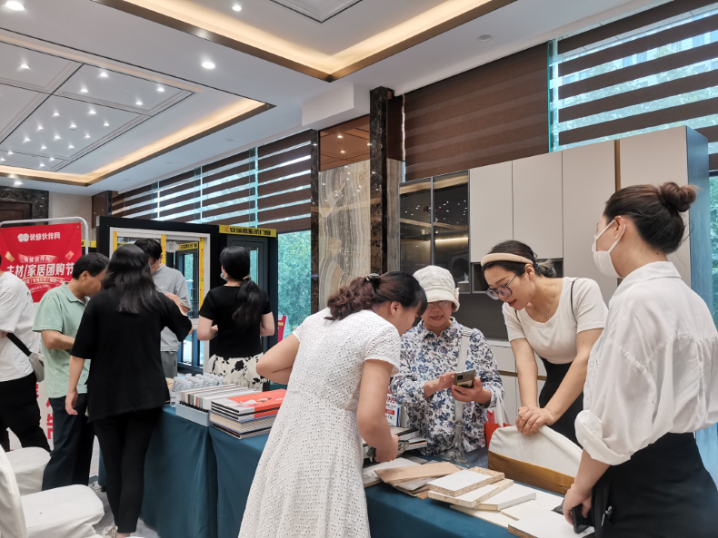 7月17日,江东中路珍宝坊酒店二楼,装修伙伴网2022夏季主材/家居清凉节在这里成功举办,活动现场人头攒动,推荐、询问、砍价声不绝于耳。