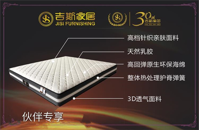 吉斯作为家具品牌传承着艺术灵性,设计中尤其注重健康元素。“健康、吉祥”始终是吉斯品牌的价值理念,坚持给消费者全新的体验。作为床垫、床具软家具领域的品牌大咖,致力于为消费者提供高品质的健康家居生活。