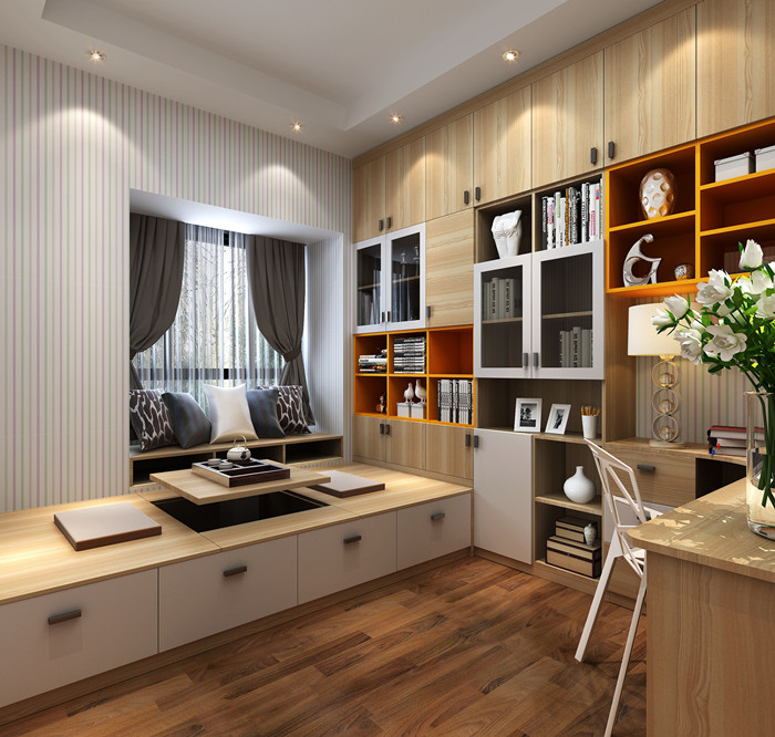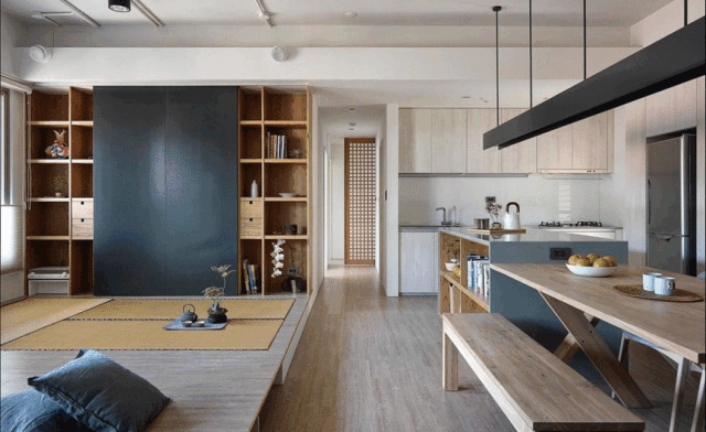 对于小户型而言,设计的重点是将每一个畸零空间都充分利用。而榻榻米恰好符合这点,它使用灵活,节省空间。