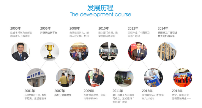 上海宇邦厨具有限公司创建于2000年,经过十余年的不懈努力与坚持,公司已为千万家庭提供厨房解决方案,服务范围已覆盖上海、北京、南京、无锡、苏州、宁波、杭州、厦门、成都、温州、长沙、昆明、西安、大连、太原、泉州、嘉兴、扬州等城市。