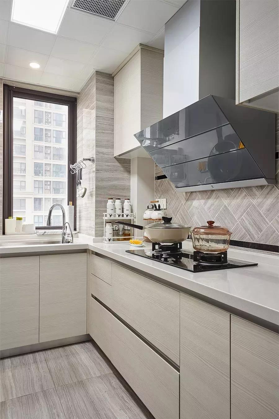 L型的厨房,动线布置合理,择菜洗碗的时候还能够看看窗外的风景。超大空间的橱柜,再也不担心买买买却没地方放了。