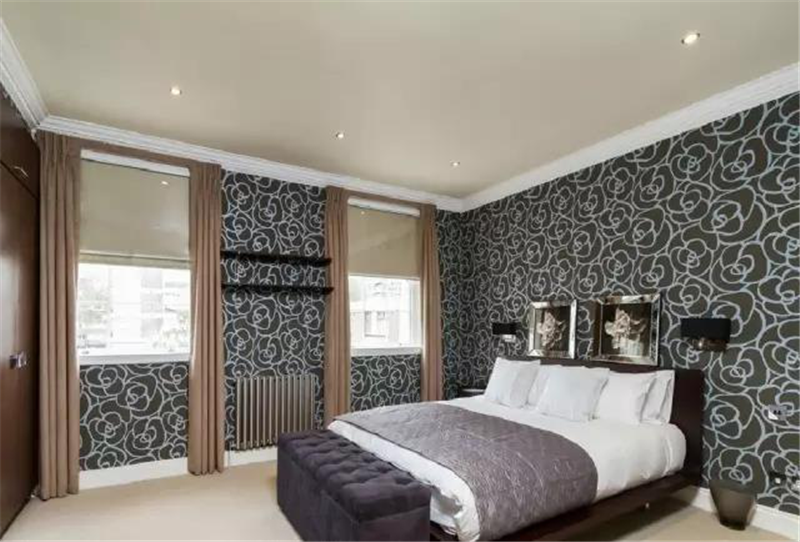 因为卧室整体给人的感觉应该是轻松愉悦的,如果房间的某面墙或者所有墙需要铺墙纸,浅色&简单的样式即可,若用深色&复杂的样式,时间长了容易给人压迫感,睡觉时也神经紧张怎么能睡的好呢?