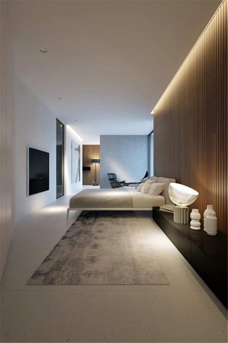 卧室其实是个很个人化的场所,建议不要弄得过于复杂。同时,建议喜欢一步到位的朋友,软装最好慢慢来,否则很容易把房间填的很满、很乱。所以卧室设计之初最需要的就是整体布局和背景墙的处理。