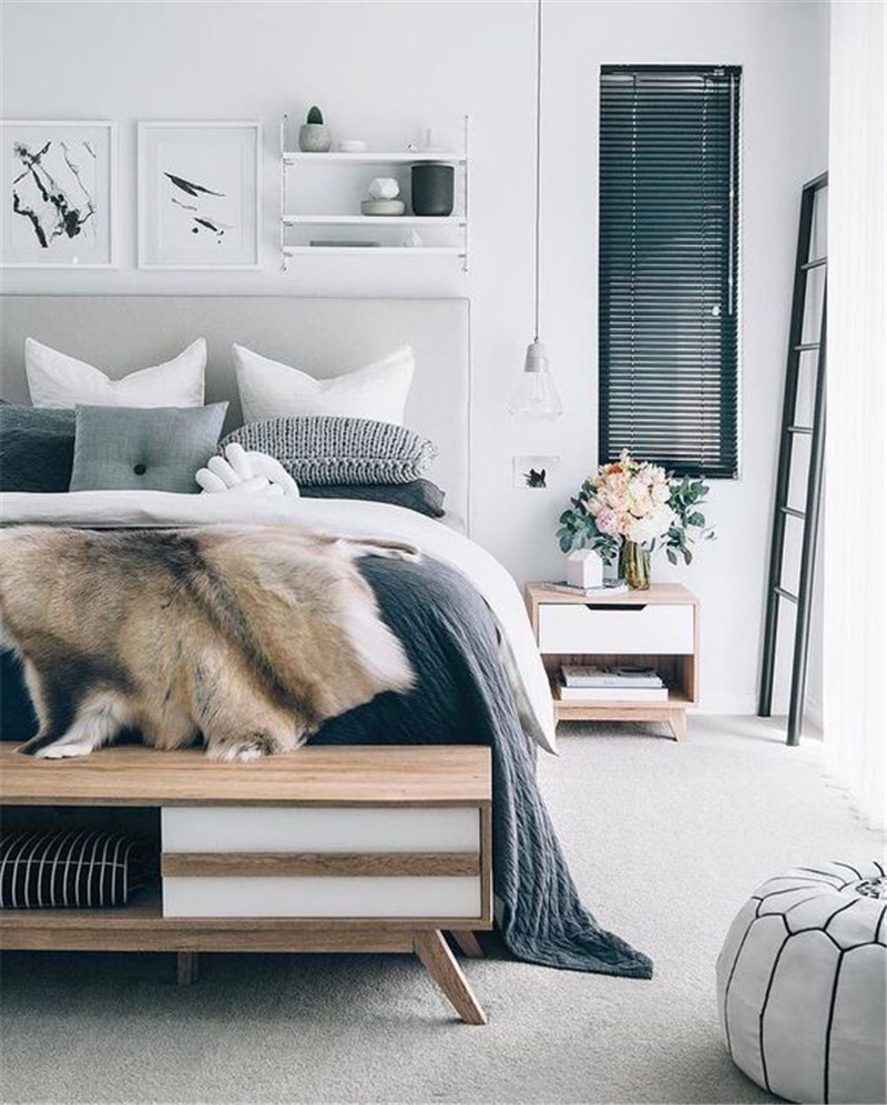 软装包括的东西很多,针对卧室来说主要就是床、床头柜的选择,灯具的选择(包括吊灯、壁灯和台灯),以及装饰画、绿植、布艺的选择,这些后续再慢慢展开说。