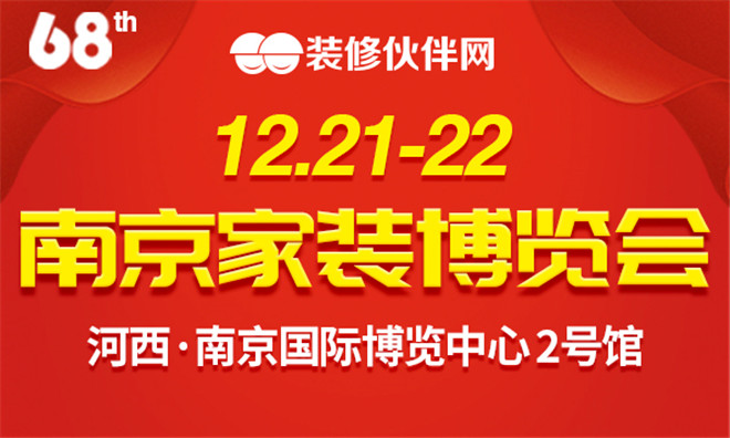 2019年12月21日-22日,南京人装修必逛的展会之第68届南京家装博览会将于南京国际博览中心2号馆正式举办,展期2天。展会现场涵盖:家装、建材、家具、装修公司等装修所需多种产品,为南京广大装修用户们提供一站式建材采购的展会平台,2019年南京家装博览会年度收官之战即将开启!装修伙伴网小编为大家整理出本届南京家装博览会重要信息,希望对大家有所帮助。