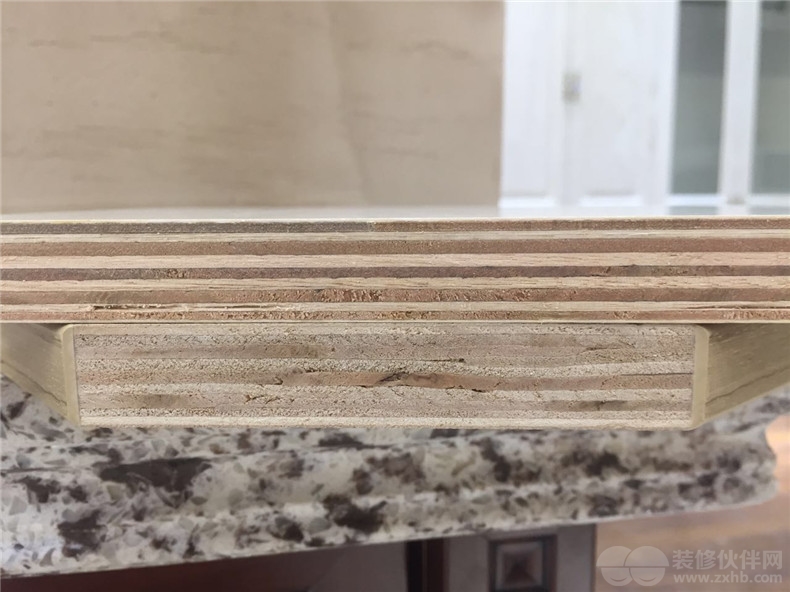 ②福客胜家纯柳桉木的实木多层板和市场上的普通多层板对比图。