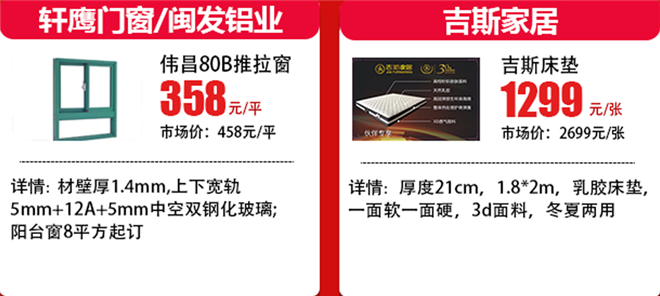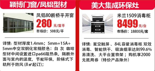 参加品牌:邦博尼全屋定制、欧派全屋定制、亚诺全屋定制、凡木尼全屋定制、欧派木门、美心木门、什木坊木门、安筑嘉门窗、颖博门窗/凤铝型材、轩鹰门窗/闽发铝业、伙伴五金、圣象地板、李洋地板。