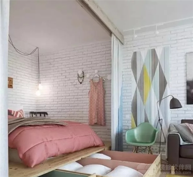 比如:榻榻米下方可以做成巨大的储物空间,将平时使用频率不高的换季衣物、被子等分类摆放其中,让小卧室功能翻倍。