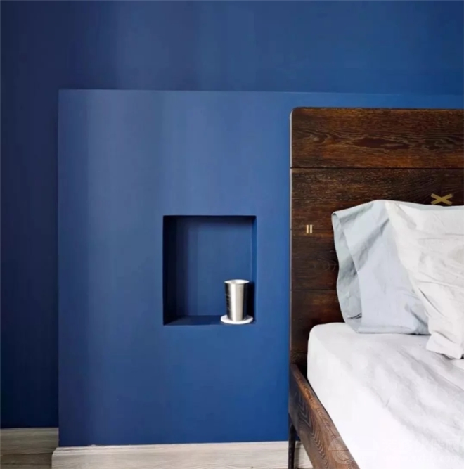 还有一种加宽床头板的设计方式,也可以替代床头柜的部分功能,而且看起来美观大气,更能彰显主人的品味与风格。